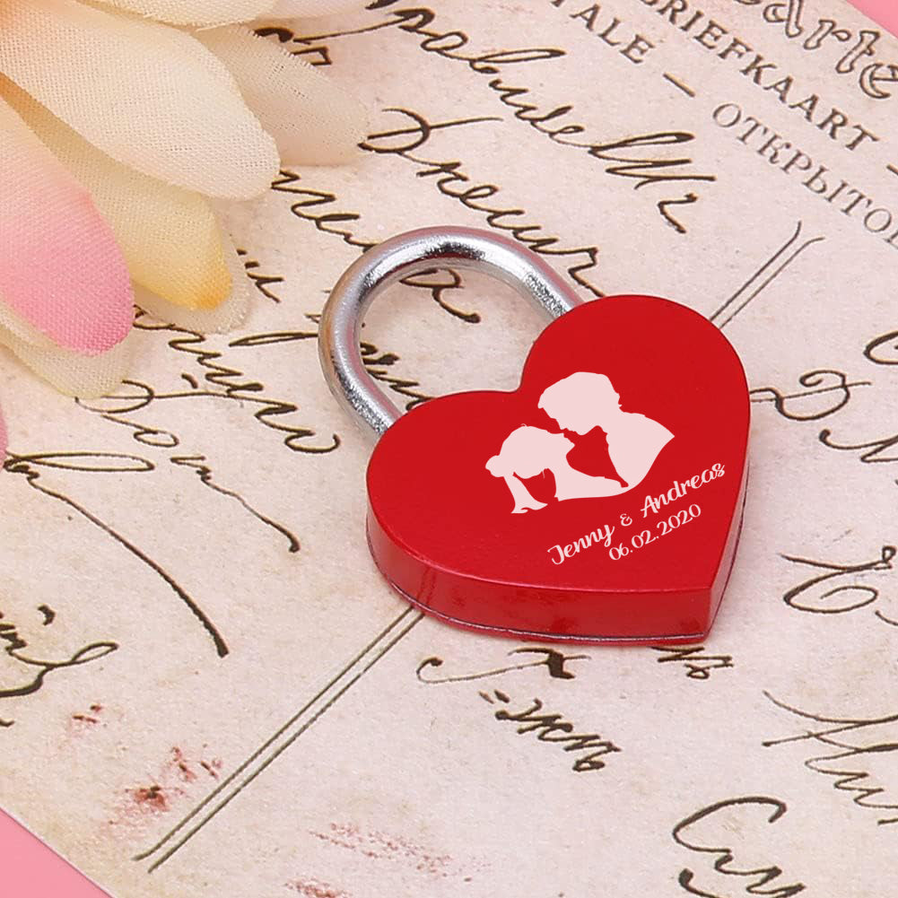 Dieses Liebesschloss kommt mit einem einzigen, ganz besonderen Schlüssel. Bewahre ihn als wertvolle Erinnerung auf, oder wirf ihn in einen Fluss oder über eine Brücke als Zeichen eurer unzerbrechlichen Liebe.