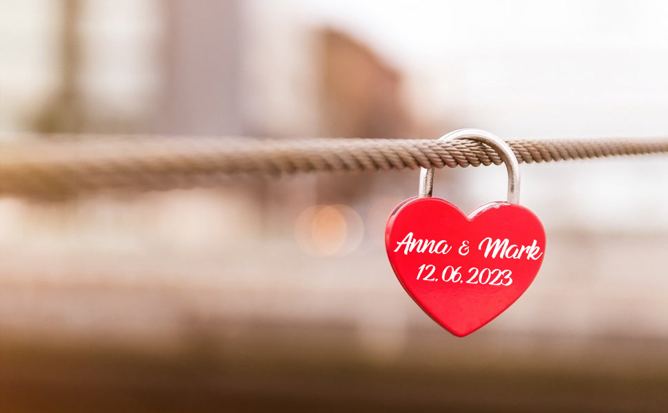 Mach es zu etwas ganz Besonderem! Wir bieten dir viele verschiedene Vorlagen für die Gravur an, damit du das Schloss nach deinen Wünschen gestalten kannst. Ob eure Namen, ein spezielles Datum oder ein ganz persönlicher Spruch – mit unseren Vorlagen wird jeder Buchstabe zu einer bleibenden Liebeserklärung.