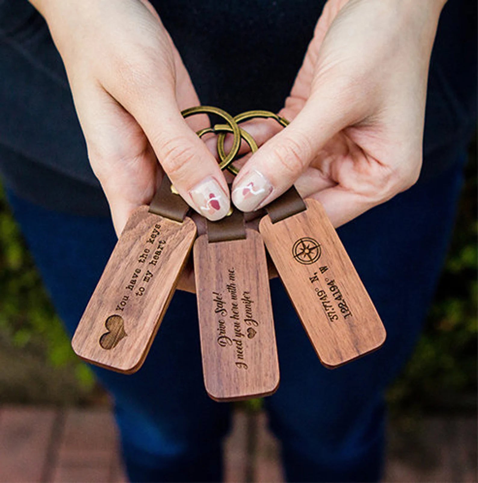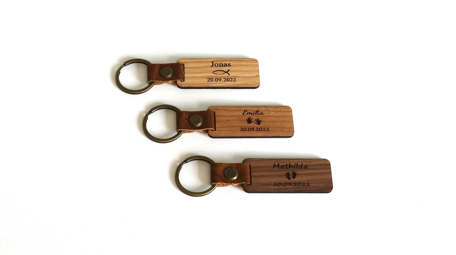 Familienanhänger, Koordinaten oder ein besonderes Datum, die Schlüsselanhänger mit persönlicher Gravur werfen alle Blicke auf sich.