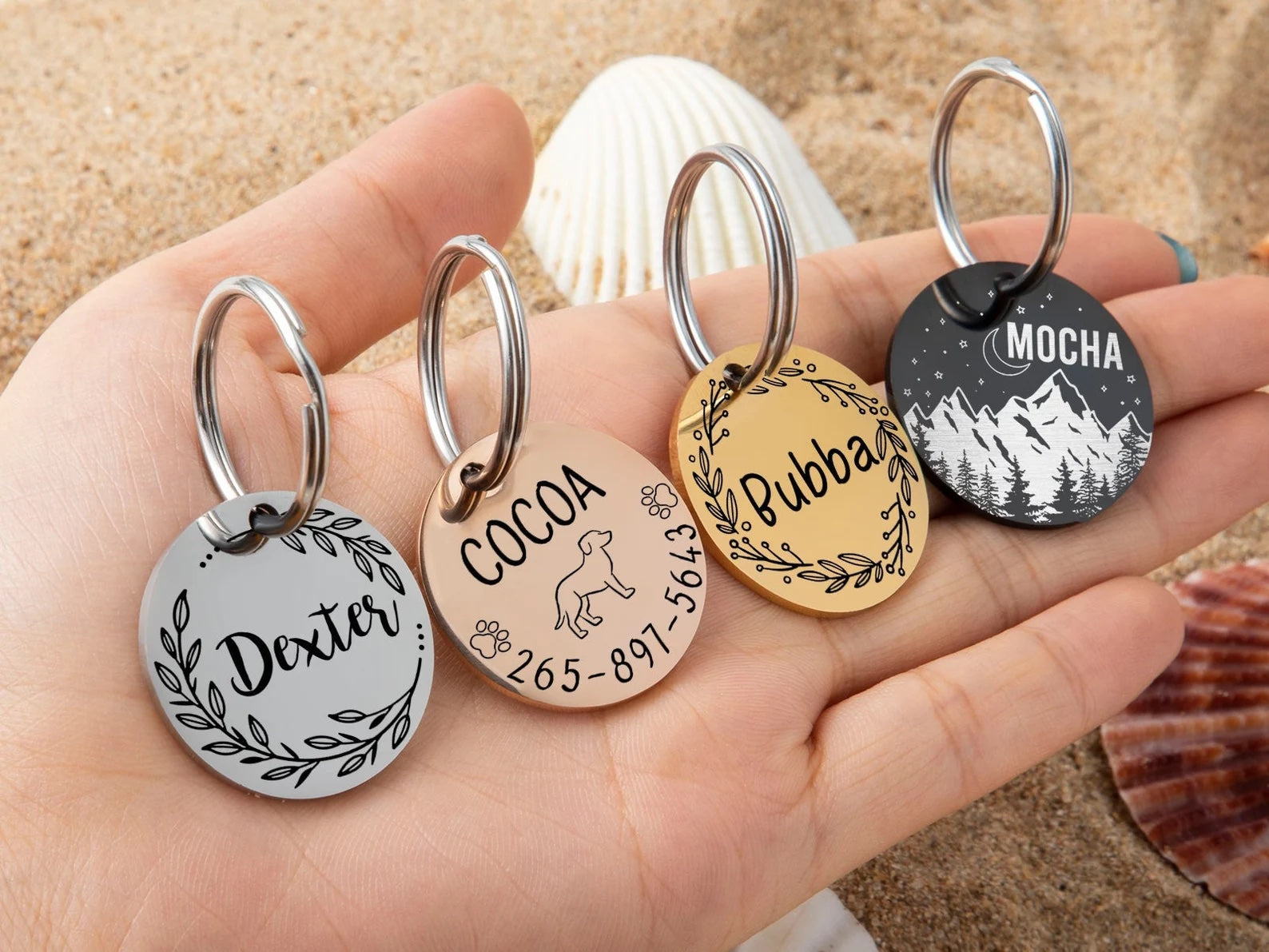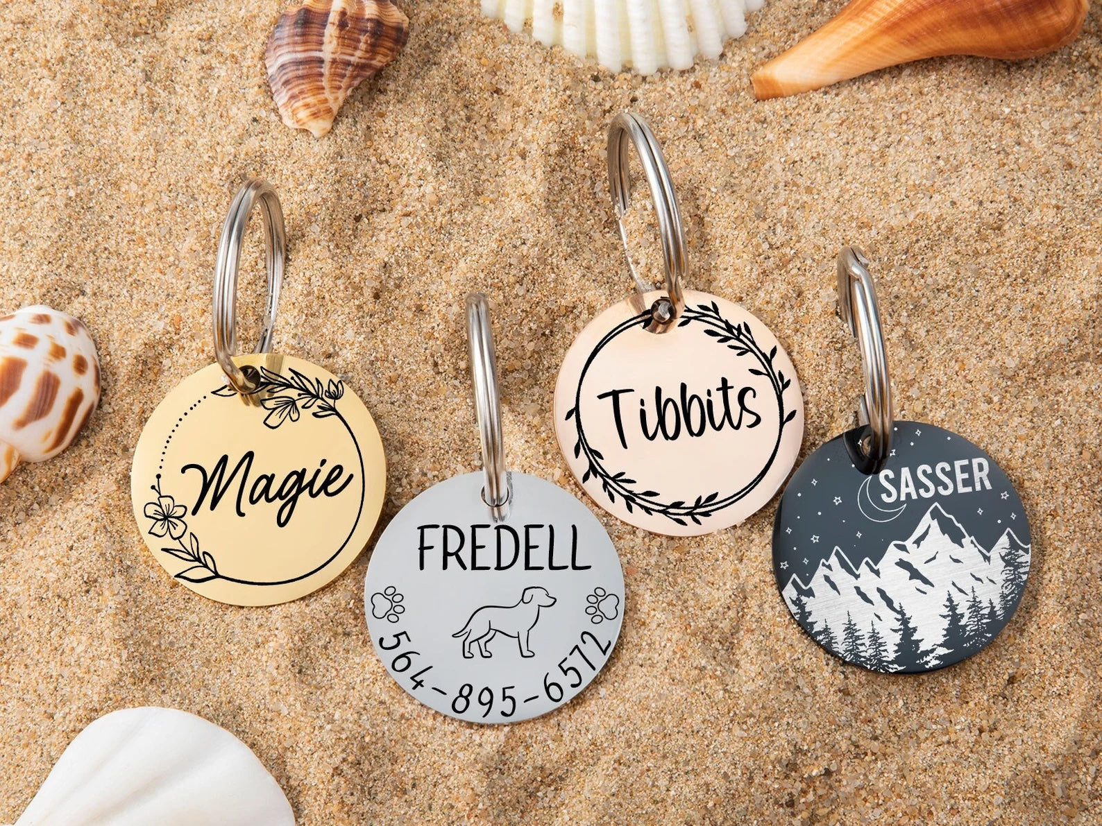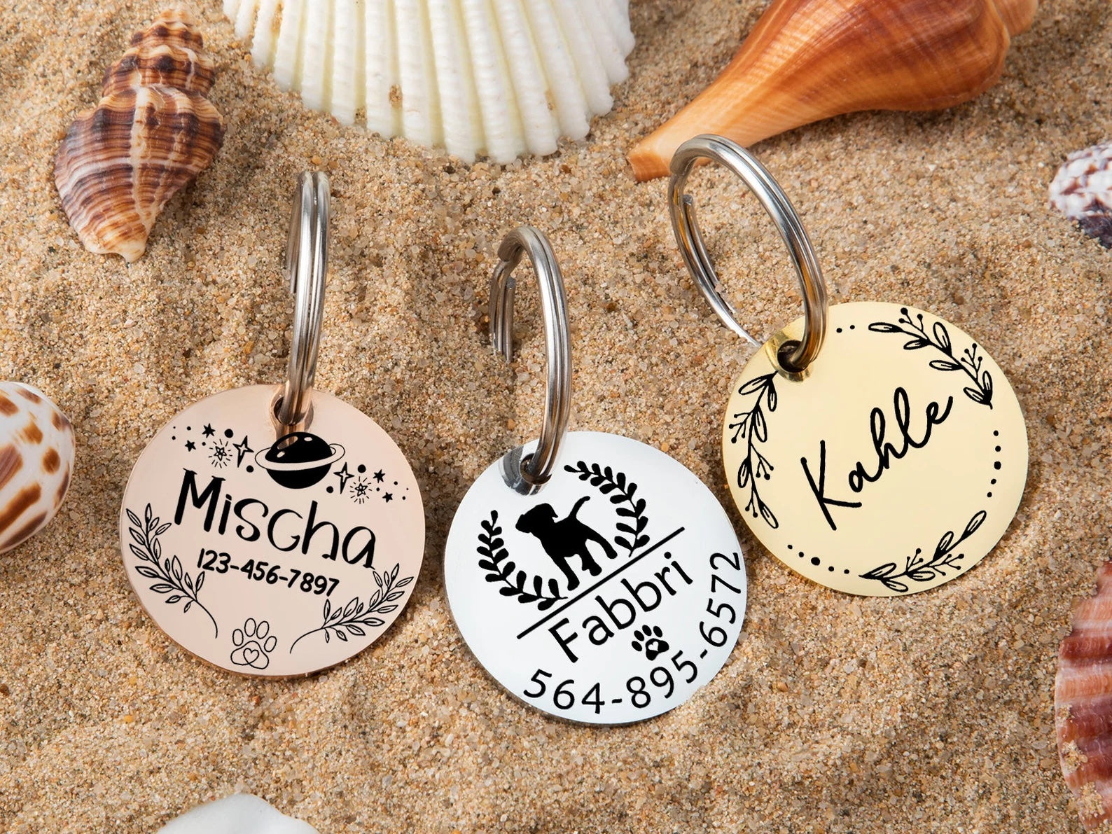 Jede unserer Hundemarken wird standardmäßig mit einem Ring geliefert. Wir empfehlen jedoch, mindestens zwei Ringe zu verwenden, um sicherzustellen, dass die Marke sicher am Halsband Ihres Hundes befestigt ist.